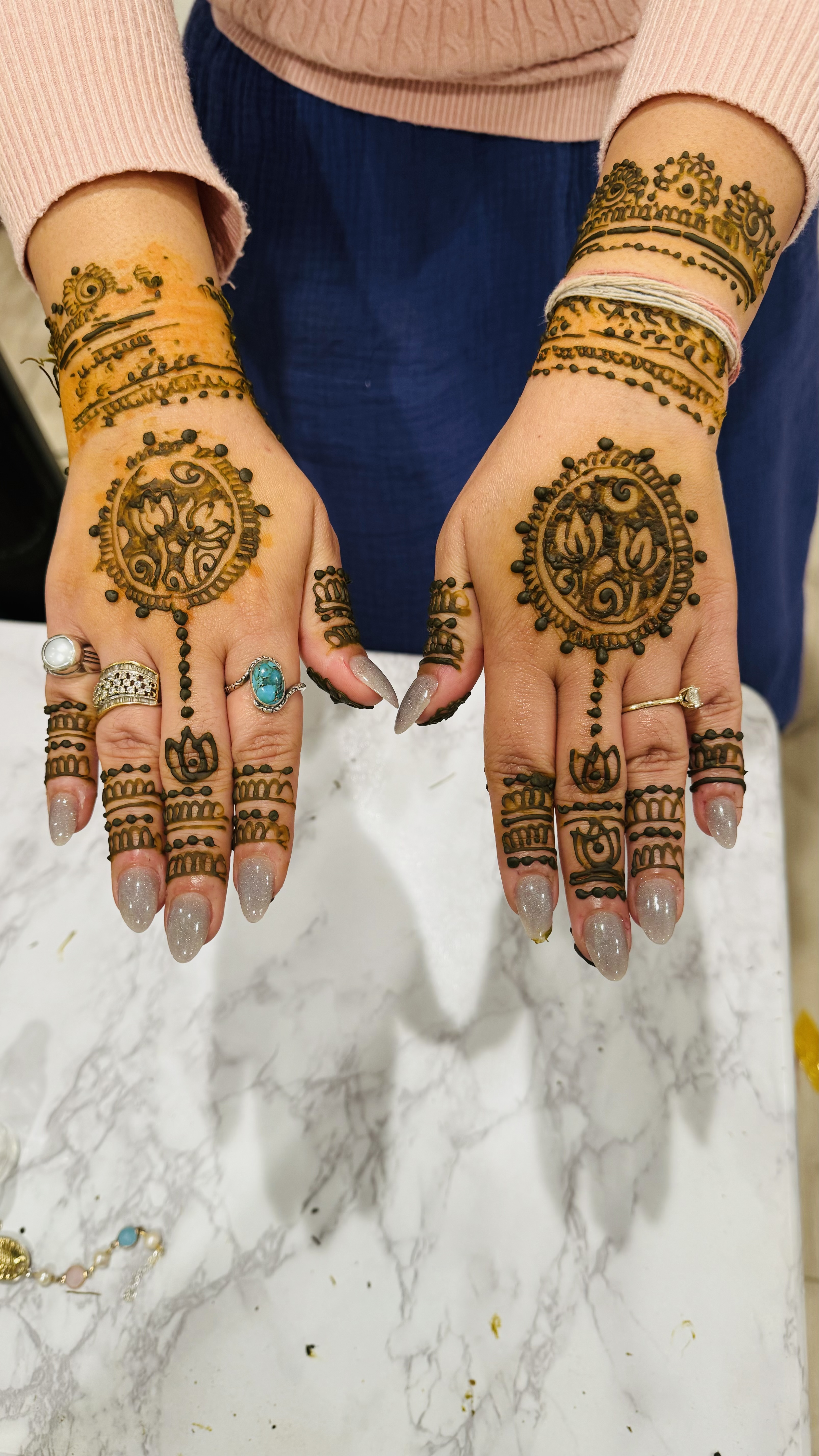 Floral henna tattoos are perfect for any occasion. Whether you’re looking to express creativity and individuality, adorn a special someone, or make an event even more beautiful, floral henna is a fantastic way to add individual flair. Its intricate design adds an interesting texture while providing a one-of-a-kind touch that will impress anyone. As an event henna artist, I ensure your mehndi henna is done perfectly to give you beautiful floral patterns that bring luck, joy, protection, and positivity. For more information about my henna services, call me today!